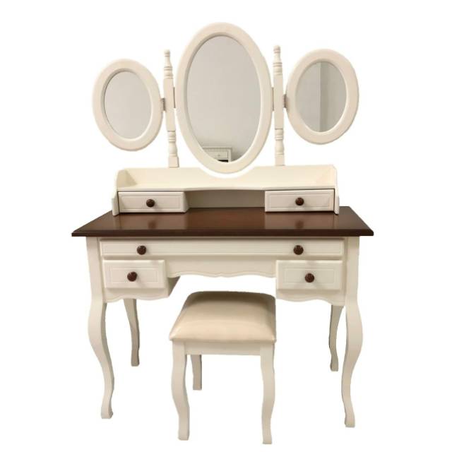 Name: Eloy Dresser Meja Rias 3 Cermin Furniture Kayu Mahoni Cat Duco Putih Klasik