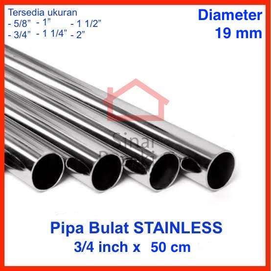 Panjang : 50 cmDiameter Luar OD : 19 mm / 3/4 inchBahan : Stainless Steel Tersedia jugaUkuran 1 meter:Ukuran 3 me