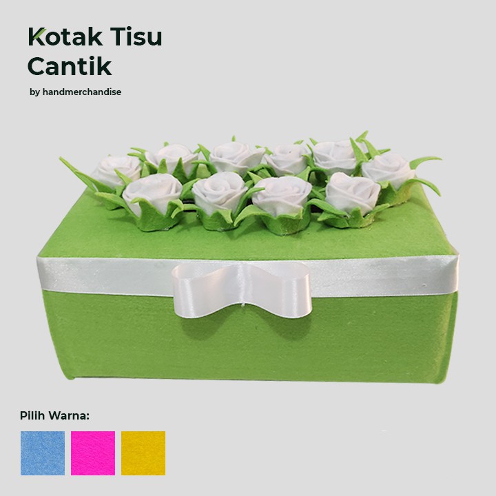 kotak tisu cantik model bunga macam model warnapilihan warna:pinkhijaubiru lautkuningukuran:panjang 24cmlebar 13cmtinggi 9cmbahan karton, kain flanel, dakron