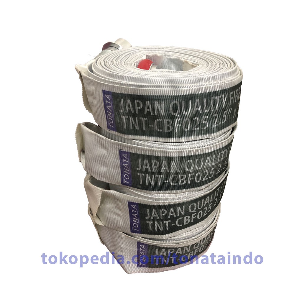 Barang Ready Stock - Selang Hydrant Canvas Machino Tonata 2.5" x 30m / Hose 2,5" x 30 mSpesifikasi:1. EPDM Hose (Canvas) 2,5 inch x 30 m2. Alumunium Machino Coupling (CNC) 2,5 inch3. 10 bar working pressure4. 30 bar burst pressure5. Bahan PCV Cover by PolyesterKeunggulan:1. Hose tidak mudah bocor (kuat 13 bar)2. Coupling tidak mudah pecah (potongan pakai mesin C