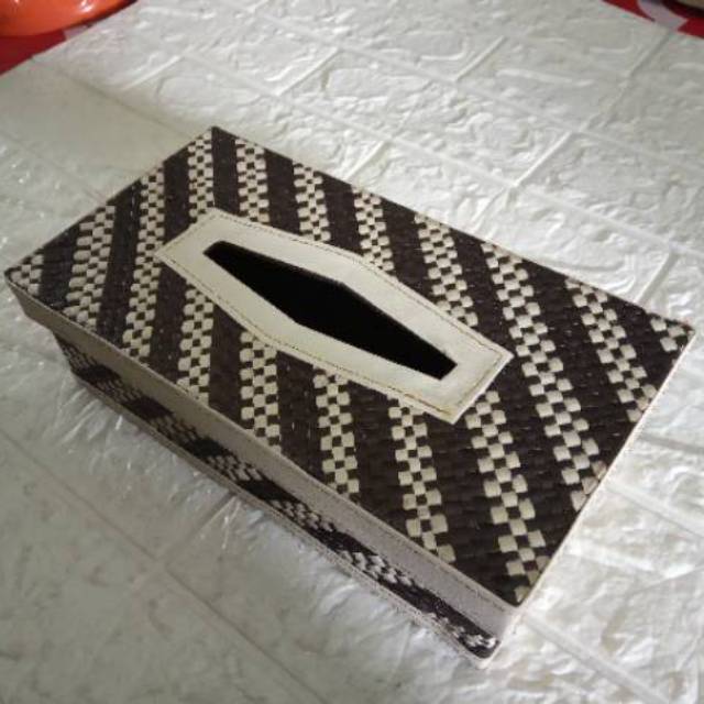 Bahan terbuat dari anyaman pandan dengan kombinasi lurikDengan ukuran panjang 24,5 cm, lebar 13 cm, tinggi 7,