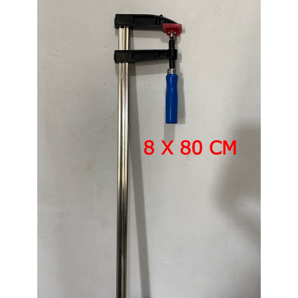 F clamp Klem kayu 80mm X 800 mm panjang 80cmalat press catok kayu,mempermudah pengerjaan press kayu dllsangat membantu dan kwalitas bahan silahkan dibandingkan dengan f clamp yg sudah beredar di pasaran saat ini,Merk:BESTTOOLS Professional ToolsNickel plated bar,Nickel plated thread barWarna handle biru bahan lebih mantab dan tebalBESTTOOLS F Clamp Wooden handleKedalaman rahang 8 cmMaksimal panjang penjepit 80 cmPanjang besi 8