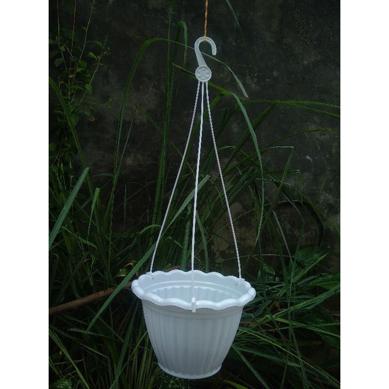 Pot tanaman / bunga gantung 25 renda putihBahan bagus dan kuatWarna putih cerahPot sudah termasuk gantungan pot.Spesifikasi :Diameter 22cmTinggi 15cnKeterangan :1kg bisa muat 7potKami menyarankan selalu gunakan Bubble Warp agar barang kakak aman saat pengiri
